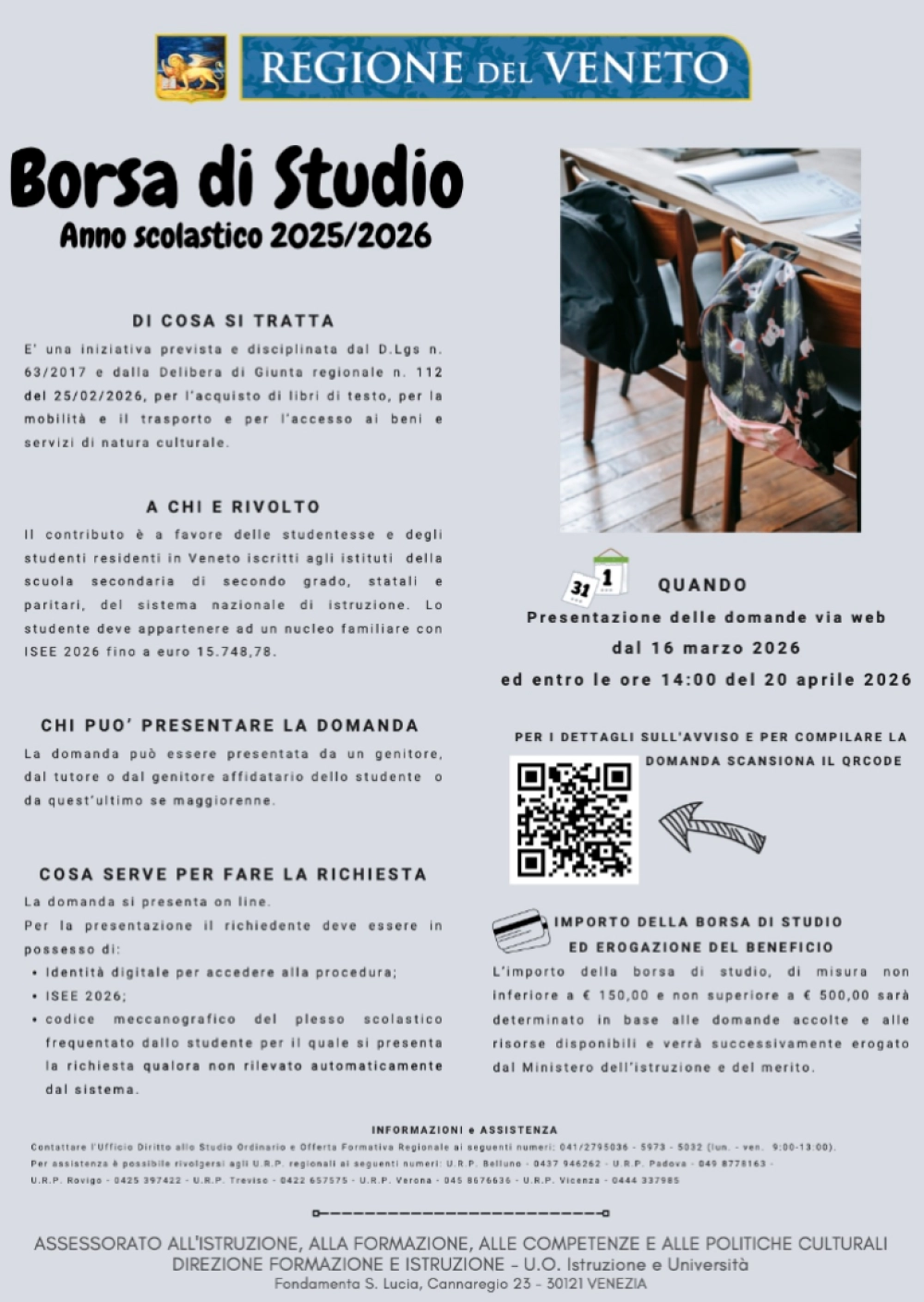 Regione del Veneto: borse di studio per l'a.s. 2025-2026