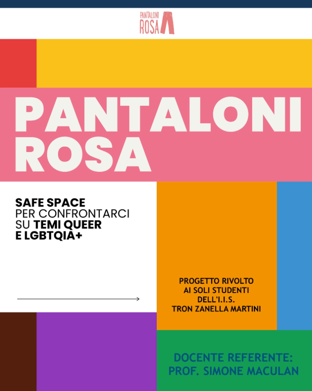 Riparte anche quest'anno scolastico il gruppo PANTALONI ROSA, un safe space dedicato alla riflessione sulle tematiche LGBTQIA+, aperto a tuttə lə alunnə del triennio dell'I.I.S. Tron Zanella Martini.
